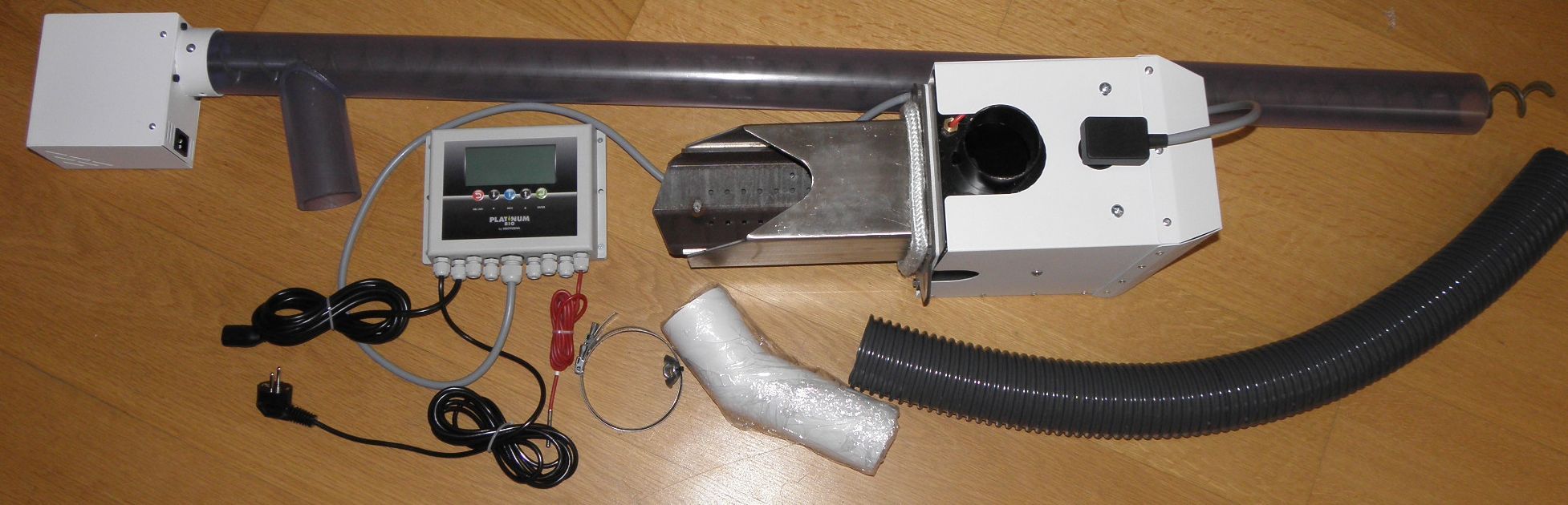 Sarja sisältää: poltin, ohjausyksikkö, kattila-anturi, syöttöruuvi 1,5 m, pellettisäiliö 295 l ja varasytytyspuikko.